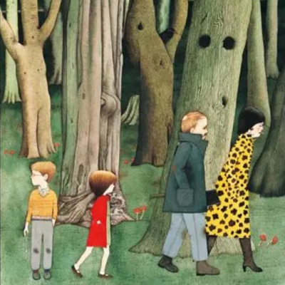 上一集说到安东尼布朗在1981年出版的汉塞尔格莱特这本书有中文版,很值得收藏的一本。大家可以找来看看。这本书文字部分就是传统的格林童话中的版本,但此时已经能够娴熟的运用超现实主义手法讲图画书故事的安尼布朗把它改编的焕然一新。比方说书中的文字里说,这家人常常穷的揭不开锅,要是遇到大饥荒,他们几乎找不到任何吃的东西。与之相配的图画,的确画中有一张铺着旧旧的桌布的餐桌,上面空空如也。