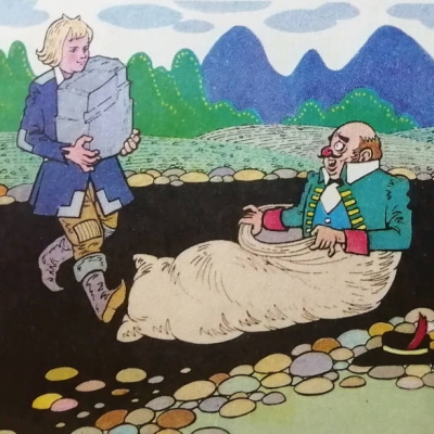 肖克劳斯一边喝着稀饭,一边用脚在装马皮的袋子上用劲儿,彩袋子里发出了吱嘎吱嘎的声音,农夫就说,你的袋子里装的是什么?怎么老在叫小可?老子说我这只袋子里装了一个魔术师,他会变魔法,这会儿他就为我们变出一桌子的好东西。农夫说真有这样的好事情,于是他按小克丝的指点打开造柜,发现了里边儿的好东西,全都端到桌子上,就和小克劳斯美美地吃起来。吃过饭,农夫说,我还从来没有见过魔鬼是个什么模样,不知道袋子里的魔术师能不能变一个,让我瞧瞧。小可老子说,我这就叫他变一个魔鬼又用劲儿踩袋子,弄得袋子之嘎吱嘎的响起来。